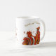 Die zwei Spirituosen der Weihnachten, des Friedens und des guten Willens. Ein abstraktes Kunstdesign in Rot und Gold vor schneebedecktem Hintergrund.