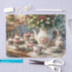 This country-style kitchen tissue paper features an old-fashioned teapot and teacups on a wooden table with crochet doilies, alongside a plate of tempting cupcakes. A vase of holly leaves and berries adds a festive Christmas touch to this tissue paper. Use this paper as filler for your "tea party gift bags" during the holiday season or for your crafting projects. The watercolor image was created by Susang6 using AI tools.