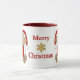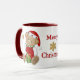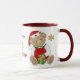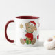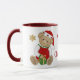Berry Frohe Weihnachts-Teddy-Bären. Junge und Mädchen tragen in ihren festlichen Urlaubskleidung gekleidete Bären und der Junge trägt eine Weihnachtsmannmütze. Die Girl-Teddy hat einen Lebkuchen.