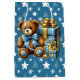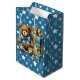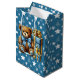Eine blaue, mittelgroße Geschenktasche mit einem Niedlichen Teddy-Bär mit Geschenken
