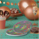 Diese phantastische Papiertafel zeigt ein festliches Foto einiger Pfauenfedern, die mit Makrofotografie aufgenommen wurden. Um die Details hervorzuheben, wurden künstliche Farbtechniken eingesetzt. Das Ergebnis ist ein lila Töneffekt, bei dem die Augenfugen Rot und Grün zeigen.