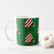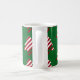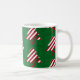Just add cocoa! Green Christmas tree mug. Mug with candy cane striped Christmas trees with a green background. Perfect for cold winter nights, hot chocolate by the fireplace, holiday gifts or stocking stuffers.