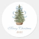 Christmas Tree Preppy Bow Blue Christmas Runder Aufkleber