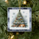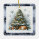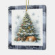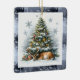 This charming Christmas ornament showcases a watercolor-style illustration of a peaceful fallow deer nestled beneath a festive Christmas tree. Delicate silver snowflakes dance across the design, complemented by an icy-textured, snowflake-framed border. Add a personal touch by customizing the greeting on the back. The adorable deer and Christmas tree were thoughtfully AI-generated and designed by Susang6.