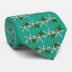 A turquoise Christmas tie with white starfish. Rows of white starfish / sea stars and green holly leaves cover this tropical blue-green tie.