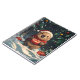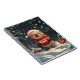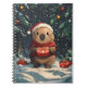 Ein Wombat, der zu Weihnachten in einem Schal gekleidet ist und ein Geschenk hält, während er schneit.