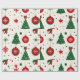 Wrap your gifts with love and festive cheer using this Christmas wrapping paper featuring a classic red and green holiday pattern with Christmas trees, ornaments, bows, and snowflakes.