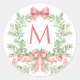 Christmas Wreath Candy Cane Bow | Monogram Runder Aufkleber