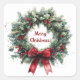 Christmas Wreath Holly Leaves Red Bow Greenery Square Sticker