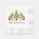 This Christmas napkin design has a preppy grandmillennial style featuring two leopards wearing Christmas wreaths with a Christmas tree in the center. You can personalize with your name.
