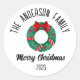 Christmas Wreath Red Bow Lights Personalized Name Runder Aufkleber