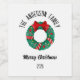 Christmas Wreath Red Bow Lights Personalized Name Weinetikett