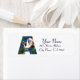 X Anfangsbuchstabe ,fett Weihnachten-Monogramm-Design.Farbenfrohe, skurrile und künstlerische Acrylmalerei für Weihnachten. Weihnachtsfeierabend, schneebedeckte Winternacht mit Blumenziern, Katz, Roter Bogen, grüne dekorative Pflanze, rote Bänder, Heilige Beeren, Puppen und Spielzeug im Schnee von Bulgan Lumini (c) com