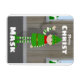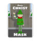 Niedlicher elfischer Charakter, der eine Gesichtsmaske hält. Im Text steht "Merry Christ Mask"
