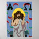 Dieses Gemälde wurde von Matthew C. Atwood während seines Juniorjahres in San Angelo S.S., TX, 1985 erstellt. Christos Pantocrator übersetzt als "Christus Allmächtig".