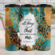 Diese kühne Grafik zeigt das inspirierend Zitat: "ICH KANN ALLES DURCH Christus MACHEN, DER mich STÄRKT", mit dem Zitat "PHILIPPIANS 4:13". Der Text wird auf einem bedrückten, weißen Hintergrund angezeigt und steht in scharfem Kontrast zum lebendigen Muster der Umgebung. Die Kulisse verbindet abstraktes Gold mit aquamarinen Elementen, die einem stilisierten Tierdruck ähneln und den göttlichen Power und die Widerstandskraft symbolisieren.