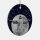 Die Statue Christi der Erlöser mit einem großen Mond dahinter und einem Sternenhimmel