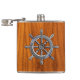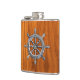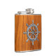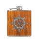Chrom Nautical Wheel auf Teak Print Flachmann