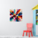 Abstract artwork of a colorful burst. This piece features a central explosion of color that radiates outward in dynamic splatters and energetic streaks. The composition is a chaotic yet balanced dance of vivid cyans, electric magentas, fiery oranges, and deep blacks against a clean background. The artwork radiates from the center with high-contrast colors including teal, red, yellow, and purple mixed with dynamic black ink lines. The layered textures and energetic splatters create depth and rhythm. This is the ultimate "statement piece." It works best in minimalist or industrial spaces where the furniture is neutral (white, grey, or black leather), allowing the art to provide the sole, powerful pop of color. Ideal for a creative home office, a modern living room, or a teen's bedroom.