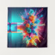 The image depicts a vibrant explosion of color erupting from a laboratory beaker. Clouds of pink, orange, blue, and green ink billow upwards, capturing the energy of a chemical reaction frozen in time. The beaker, filled with a glowing blue liquid, sits on a reflective surface, hinting at the transformative power contained within. The dark background and strategic lighting further emphasize the brilliance of the colors, creating a sense of wonder and excitement.
