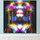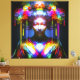 Das darunterliegende Gewand ist ebenso faszinierend, mit geometrischen Mustern und einer reflektierenden, glasartigen Textur, die dem Bild Tiefe und Leuchtkraft verleiht. Das Zusammenspiel aus kräftigen Farben und detailreicher Gestaltung erzeugt ein kaleidoskopisches visuelles Erlebnis und macht dieses Werk zu einem Highlight jeder modernen Kunstsammlung.