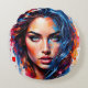 Elektrisches, farbiges Porträt einer Frau, die mit fetten Tropfen, Spritzern und leuchtenden Neontönen in Blau, aquamarin, Magenta und Orange bemalt ist. Der Mix aus Realismus und abstrakter Straßenkunst macht Plakate, Leinwand, T-Shirts und Telefonzellen zu einem eindrucksvollen Plakat. Hochauflösendes Kunstwerk.