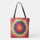 Dieses Bild ist ein lebendiges, abstraktes Spiraldesign mit zackigen, konzentrischen Ringen in fetten Farben wie Rot, Orange, Gelb, aquamarin und Maron. Das visuelle Muster erzeugt einen hypnotischen, kaleidoskopischen Effekt und zeichne das Auge in Richtung des Zentrums, in dem eine Sternexplosion nach außen abstrahlt. Das Gesamtbild erinnert an einen Retro-psychedelischen Stil, der sowohl geometrische als auch Bio Elemente für ein faszinierendes und energetisches Aussehen kombiniert.