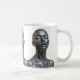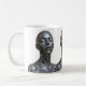 This elegant mug showcases a trio of identical futuristic female androids with a sleek chrome finish. Their closed eyes and mirrored expressions convey a sense of calm, strength, and futuristic harmony. Ideal for fans of sci-fi, robotics, and minimal digital art, this mug brings a clean, tech-inspired aesthetic to your coffee moments or creative space. A bold and refined visual statement.
