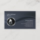 This musician business card features a faux chrome french horn icon. Designed for music, bass, bassist, bass guitarist, musician, band, entertainment, rock themes.