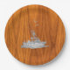 Chrome like Fishing Boat on Teak Wood Pappteller