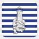Chrome Like Lighthouse on Nautical Stripes Quadratischer Aufkleber