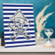 Ein silberfarbenes Piratendesign in marineblau-blauem Streifen. Ein modernes nautisches Geschenk. Verwenden Sie den Link "Nachricht", um uns mit Ihren speziellen Designanfragen zu kontaktieren oder um Hilfe bei Ihren individuellen Projektbedürfnissen zu erhalten.