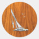 Chrome Like Sailboat auf Teak Veneer Runder Aufkleber