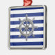 Ein silberfarbenes Raddesign in marineblau-blauem Streifen. Ein modernes nautisches Geschenk. Verwenden Sie den Link "Nachricht", um uns mit Ihren speziellen Designanfragen oder für Hilfe bei Ihren individuellen Wünschen zu kontaktieren.
