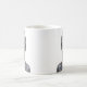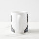 Glossy black-chrome female android with closed eyes, centered on a white mug in a futuristic style.