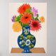 Chrysanthemen in einer blauen chinesischen Vase Poster