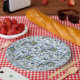 Das Bild auf dieser eleganten Papiertafel wurde durch die frischen, sauberen und gemütlichen Möbel inspiriert, die typisch für die englische Hütte sind - laut britischen Fernsehsendungen, Filmen & Interior Design Magazinen, das heißt! Das Design umfasst eine Fülle von schwarz umrissenen weißen Mums, mit blass/blass bestreute Highlights auf einem blau mottles blauen Hintergrund und mit einem anpassbaren Textfeld (für das Monogramm des Empfängers) in blauem Skript-Set in einem weißen Rundmedallion.