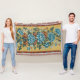 Goldene Farbtöne und kühn blaue Chrysanthemen blühen in raffinierter Symmetrie, die die Eleganz klassischer Brokade widerspiegelt. Inspiriert von traditionellen chinesischen Mustern, ehrt dieses Design den Geist des Herbstes, der Widerstandskraft und der stillen Schönheit. Eine zeitlose Hommage an das noble Chrysanthemum.