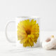 Ein attraktives gelbes Chrysanthemum-Design. Das Motiv wird auf beiden Seiten der Tasse platziert.