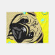 Mops mit einem schwarzes Gesichts- und Gelbhintergrund mit Kreisen
