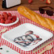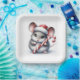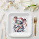 Eine niedliche flauschige Maus trägt eine Weihnachtsmannmütze und hält einen großen gestreiften Bonbons
