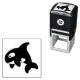 Adorable Cartoon chubby Orca Wal mit einem winzigen weißen Herz in der Nähe seines Schwanzes. Passen Sie sich mit Ihrer eigenen Adresse an.