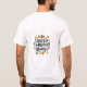 Das Design des T - Shirt beinhaltet den Satz "Chuckle Champions Always" in fett, bunt, umgeben von spielerischen, abstrakten Formen und Symbolen, die Lachen und Freude darstellen. Das Design ruft ein Gefühl von Spaß, Positivität und die Wichtigkeit der Freude am Leben hervor