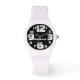 Die personalisierte Armbanduhr mit ihren weißen, grobkörnigen Zahlen ist auffällig und leicht zu lesen. Niedlich, funktionell und lustig!