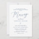 Moderne blaue Kalligraphieschrift, kirchliche Hochzeitsfeier, Braut- und Bauerneltern mit Einladungskarte.