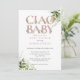 Ciao Baby Dusche Einladung mit eleganter staubiger Rose rosa Typografie, hübsch botanischem Grün und Ihrem besonderen Foto auf der Rückseite. Entwickelt von Thisisnotme©