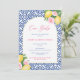Trendfarbene Aquarelllemons und glänzende grüne Blätter mit Kobalt-Blau-Weiß-Vintagem Fliesendesign. Diese moderne Babydusche lädt zum Design ein. Wenn Sie andere Formulierungen als "Ciao Baby" wünschen, senden Sie mir bitte eine E-Mail. Um Verzögerungen zu vermeiden, verweisen Sie bitte darauf, auf welche Einladung Sie sich ändern möchten (senden Sie einen Link oder einen Screenshot).