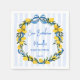 Ciao Bambino Lemons blaues Bugband Italienische Babydusche mit Monogramm Servietten, Zitrusfrüchte Zitronen blau und gelb Babydusche personalisiert bedruckte Servietten; italienische Babydusche personalisierte Tischdekoration