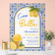 Italienisches Brautparty oder Junggeselinnen-Abschied-Schild mit einem schicken Bogen-Rahmen und mediterranen Amalfi-Kacheln in Blau, Weiß und Gelb mit Zitrusfrüchte-Zitronengelato-Illustrationen, die an einen Sommerurlaub in Süditalien erinnern. Bitte schreiben Sie mir, wenn Sie Hilfe bei der Anpassung benötigen.