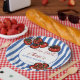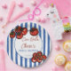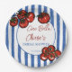 Ciao baby Kleine Tomate blaue Streifen Italienische Brautparty personalisierte Pappteller Vorlage, Bauernmarkt-Brautparty bedruckte Pappteller, Italienische Brautparty personalisierte Tischdekoration, Kirschtomaten-Brautparty Pappteller, handgezeichnete Tomaten , Grand Millennial Brautparty Partydekoration